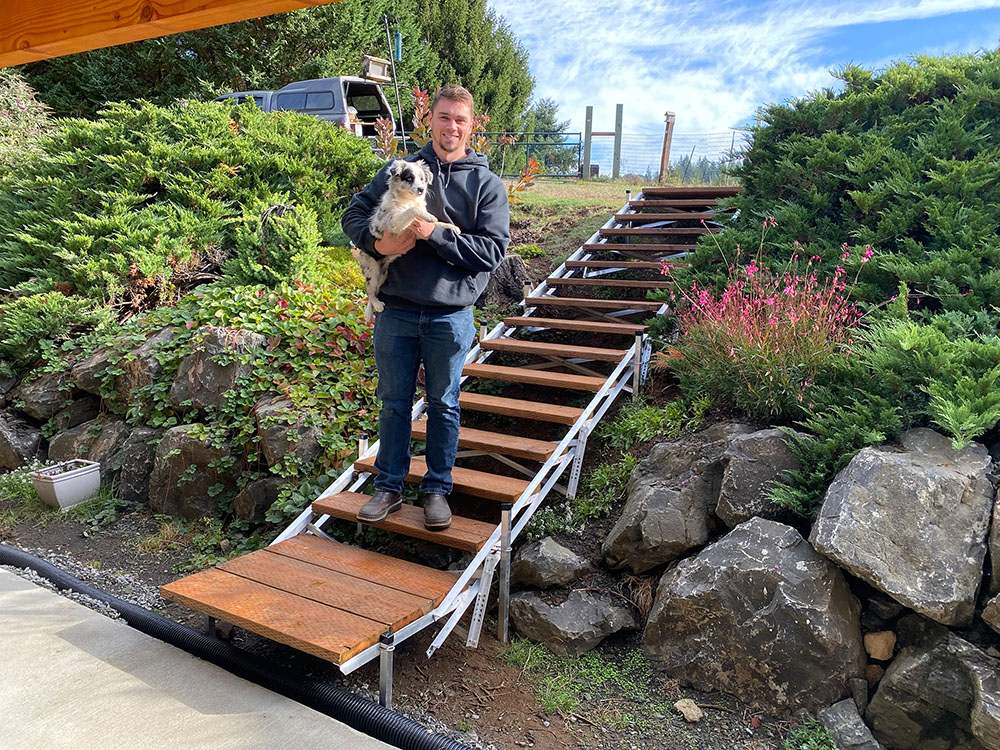 Our bolt-together aluminum stairs are easy to assemble and install . You won’t need any special tools or construction skills to build beautiful and cost-effective DIY hillside stairs . Just follow our simple instruction manual and in a few hours you’ll have a safety-approved stair system that will last a lifetime with minimal environmental impact .