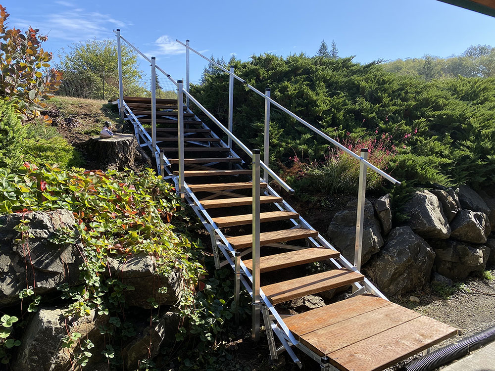 Do you have a steep slope that needs a safe way to get up and down? Rolling Barge lightweight kits are ideal for building stairs into a hillside . Our kits are designed for all types of terrain, shoreline access, and a variety of other applications where exterior stairs are the best way to get from point A to point B .